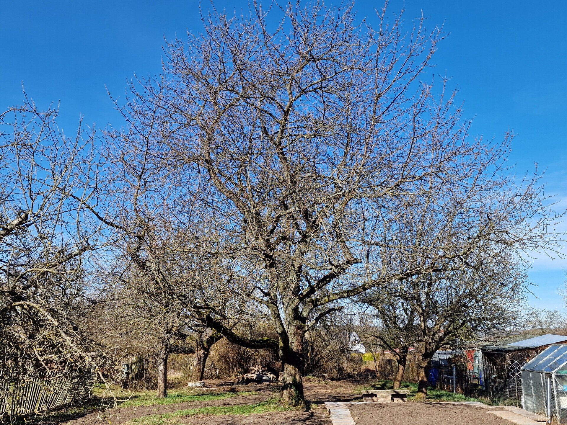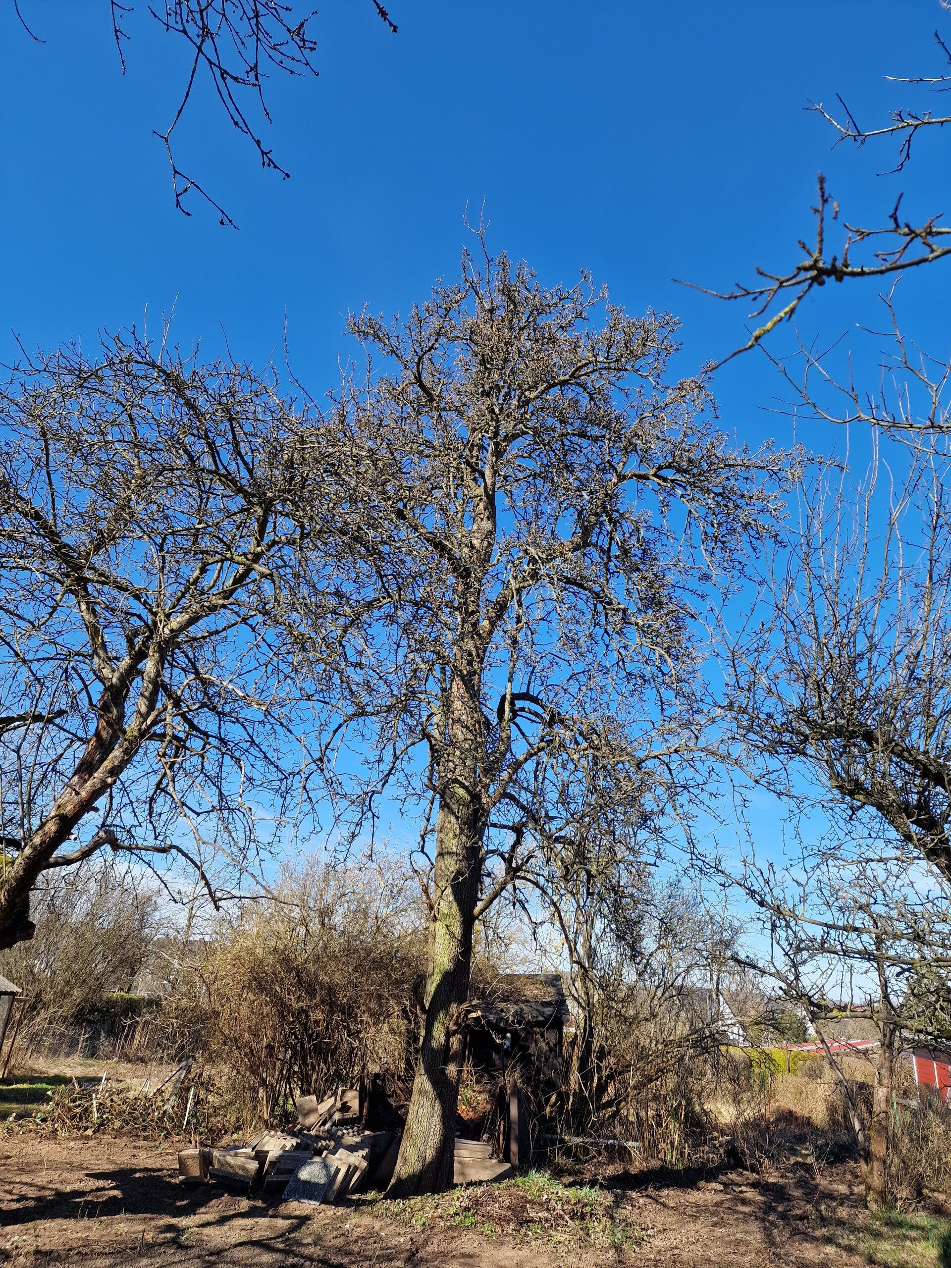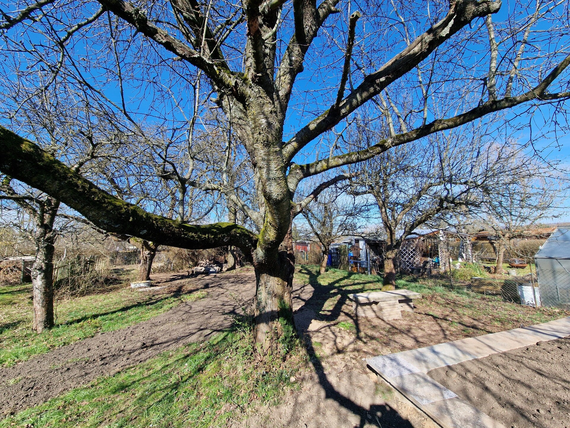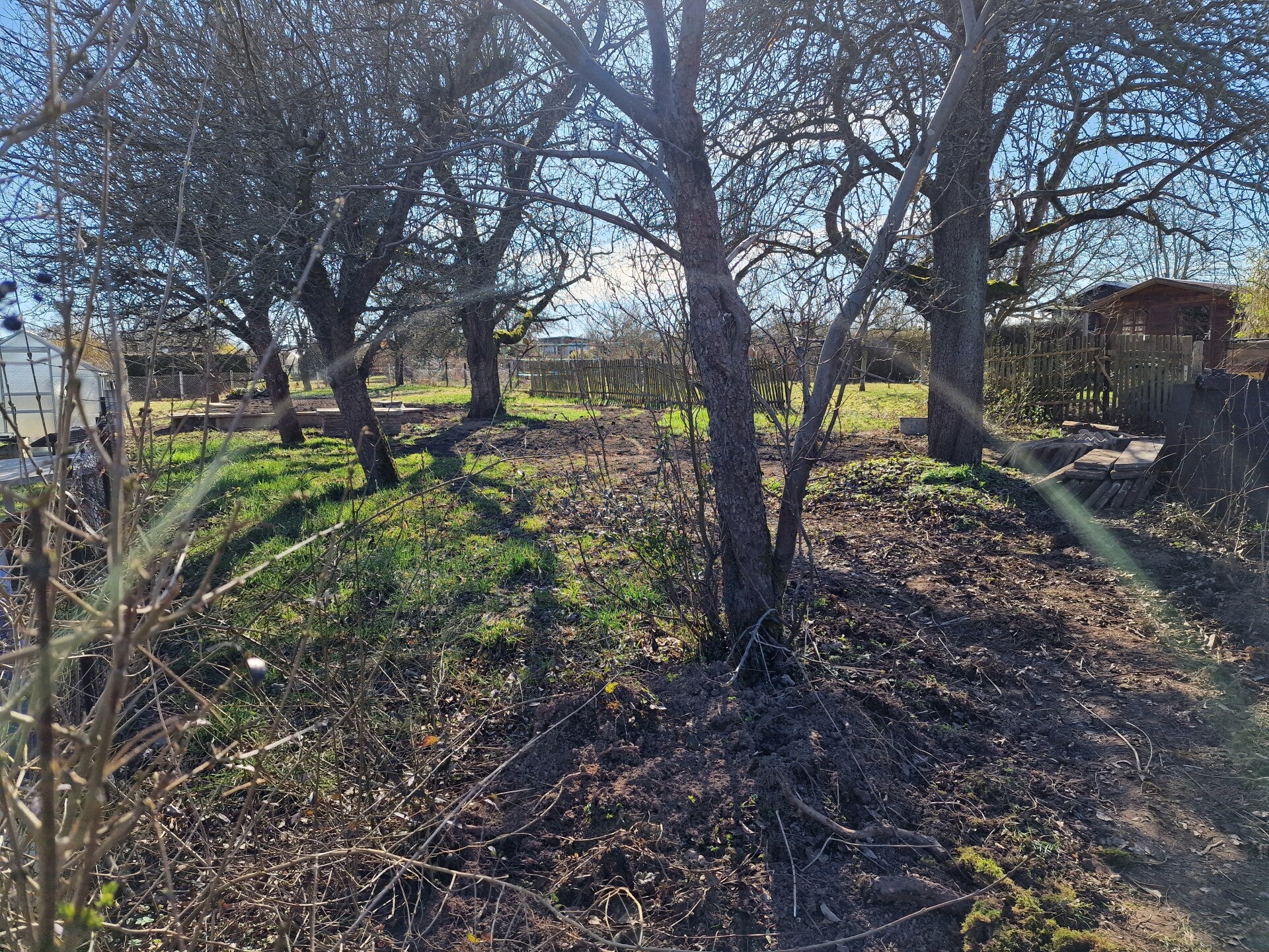 Im Garten Nr. 74, dem sogenannten "Obstgarten" sollte neben der Laube auch wertvoller Obstbaumbestand entfernt werden. Dank des unermüdlichen Einsatzes der Gartenfachberaterin, der guten Zusammenarbeit mit den ehemaligen Pächtern und vor allem unserem Vorstand konnte die Fällung wertvoller, alter und vitaler Baumbestände, darunter eine ca. 50 Jahre alte Birne, eine ca. 60 Jahre alte Kirsche und viele Äpfelbäume verhindert werden. Aus diesem Grund konnte der Garten natürlich nicht mehr verpachtet werden, da die Bäume kleingärtnerisch nicht mehr händelbar sind, aber ökologisch von unschätzbarem Wert für tausende Arten. Sie dienen als natürliche Klimaanlage, Schattenspender und filtern Feinstaub. Außerdem sind sie Rückzugsorte für Vögel, Insekten und Fledermäuse. Da war es naheliegend, daraus einen Naturlehrgarten zu machen, der dann auf andere Weise sinnvoll genutzt werden kann, so noch lange erhalten bleibt und zur Biodiversität, Klimaregulierung und Luftreinigung beiträgt.